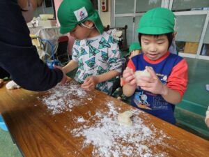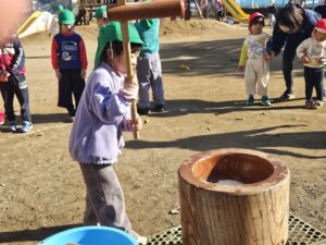 みんな、みててね 重い杵に苦戦しながらも ぺったん ぺったん いいリズム!